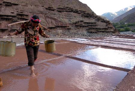 她们就像台地上的核桃树一样健康,生机勃勃,像那些盐粒一样饱满、纯洁。她们都知道,自己这么辛苦是为了自己的家,为了自己的孩子和家人。她们似乎注定了只有这样的生活,所以她们心甘情愿,她们知足感恩,她们因从大自然那里获得盐水而欢喜,尽管那盐水要以许多的汗水才能换得。