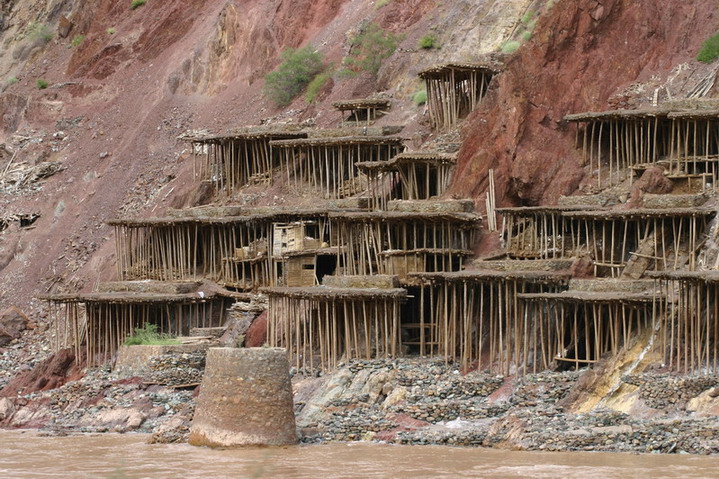 到中午时分,她们就三五成群聚在一家的简易小屋里,或干脆就坐在盐架下面,打一些酥油茶,吃一点各自带来的面饼、馒头、糌粑之类的干粮,有的还会炒一两个青菜或煎几片咸肉。到天黑收工时,她们会躲在江边的大石头后面,就着江水梳洗一番,然后换上干净的衣服,回家吃饭休息。