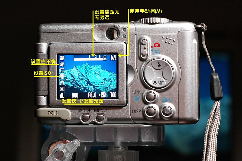 不要失望和沮丧,只要你肯花点时间和精力,照样可以出好片。现在我就教你如何运用现有资源做出宽幅拼接图。首先你要有一台拥有手动(M)档的小数码相机,比如CANON A95,和一个三角架,还一台装有PHOTOSHOP的电脑。电脑是作为后期制作的数码暗房;三角架使前期拍摄的照片的水平位置统一为后期的制作提供最好的素材;相机的手动功能则是使用固定光圈/快门/白平衡/焦距/ISO参数使拍摄的一组素材照片效果始终如一。