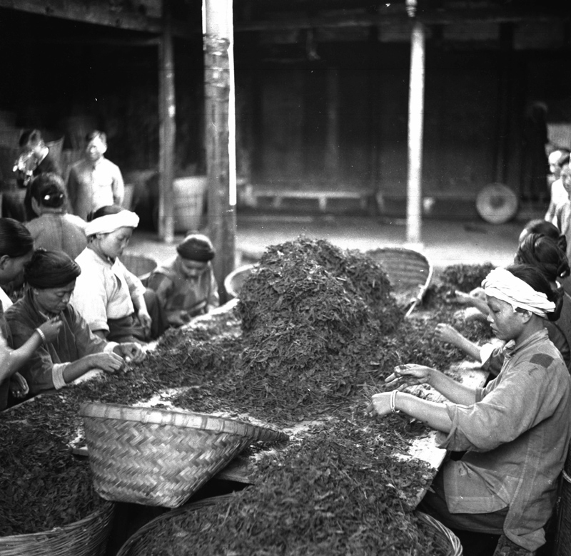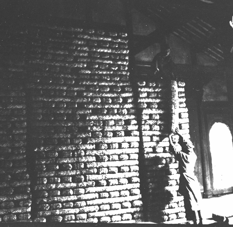 雅安第五茶厂生产出来的大量边茶起运前堆放在茶库中,此为工人正堆放茶包。