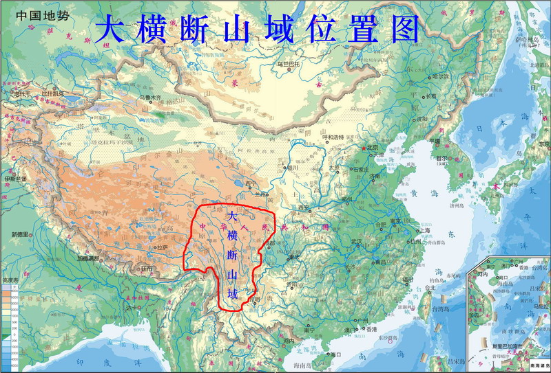 大横断山域位置图