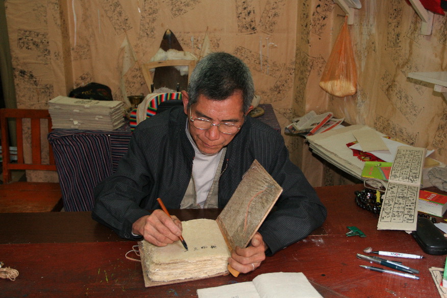 这个就是俺买的那个东巴纸做的日记本(记得殷姐好象也买过一个),那个老人正在给俺用东巴文写一些祝福的DD。