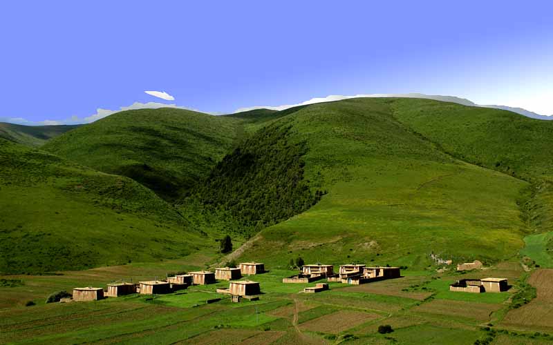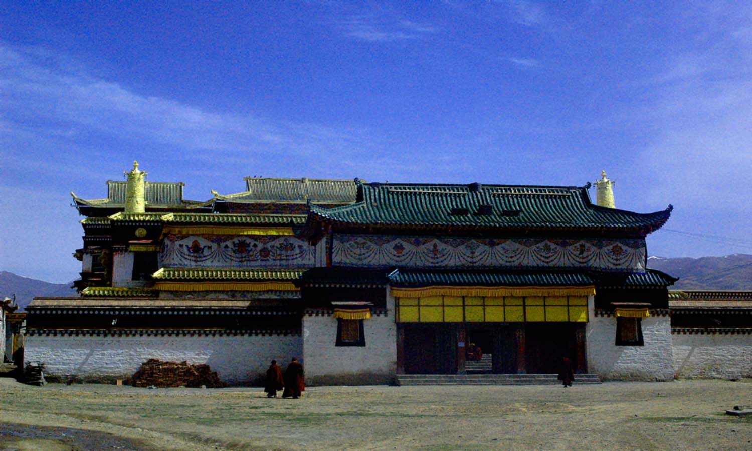 五月的阿曲河畔,空气中弥漫着新耕泥土的沁香。借着灿烂的阳光,沿河两岸的草地开始泛出绿色来。就在这个五月的第一个星期天,我们来到了距离阿坝县城约4公里的四洼乡尼姑寺。寺庙坐落在一个懒懒的山坡上面,远处有连绵的山,山下是一片开阔的河谷。蜿蜒的邓扎曲(河)欢快地流淌着,带来了远山里冰雪融化的消息。当我们驱车走进这片河谷的时候,看见小河边有群洗衣的小尼姑,她们把衣服拧干水后随意地在身边的河滩草地上摊晒着,那一块一块耀眼的红色,在淡淡的青色中逼入我们的眼帘。小尼姑们相互说笑嬉戏着,小河的水不时被她们掀起朵朵浪花。我和县电视台的记者们被她们的情绪感染了,下车来迫不急待地伸展着身躯,手舞足蹈起来。然而,就在我们下车的同时,这些小尼姑们停止了打闹,在一旁偷偷地看着我们,窃窃私语。我听不懂她们在讲什么,但她们也许懂得了我们向春天的草原和蔚蓝的天空表达的那种无法用言语说出的自由。