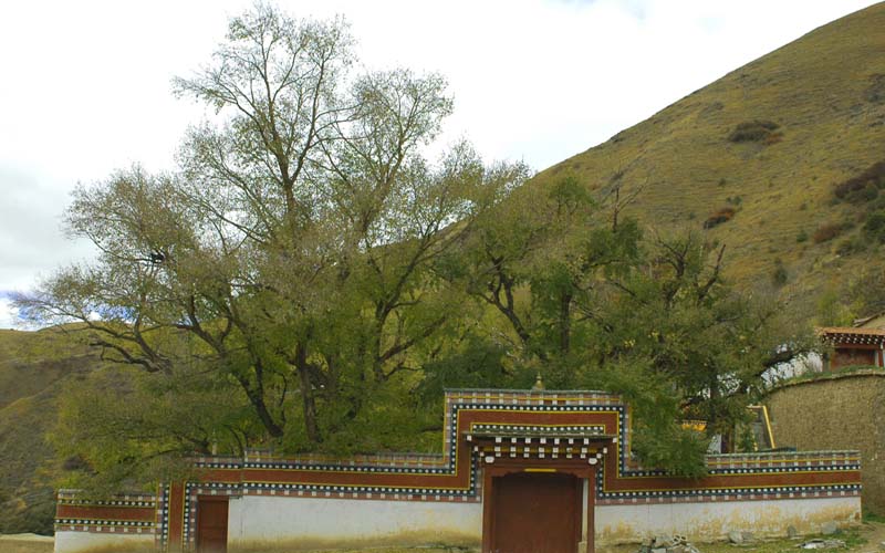 在扎嘎沟让我感动的不仅是这座古老尔神秘的寺庙,还有这里的原始生态风光。虽然八月的扎嘎沟树叶还未转红,没有“漫山红遍层林尽染”的壮美,但“幽幽鸣泉寄梦语,飞瀑遥落五彩池”的无双佳境,已足以让我心旌摇动,陶醉沉迷。喝一口圣洁、甘甜的雪山溶水,走过翠苔缨缨的扎嘎深沟,让婆娑的树挂松萝拂平疲惫,让邂逅的雪雨冰蛋洗去繁忧……