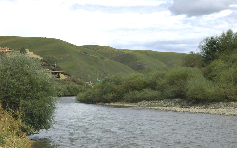 “滚滚长江东逝水,浪花淘尽英雄。是非成败转头空。青山依旧在,几度夕阳红”。心中吟诵着杨慎的名句,眼睛凝视着古老而年轻的热曲河,一种别样的情绪涌上心头。此时的热曲河在我的眼里象一位恬静害羞的少女,她是那样的含蓄,那样的轻缓,那样的清澈。也许是因为她才离开母亲的怀抱不久,或许是她刚走出闺房不远,一切的征战和洗礼对她来说还没有开始。