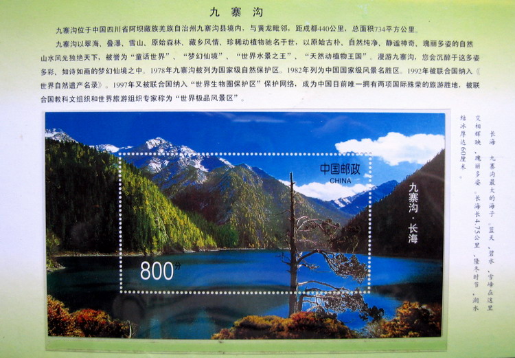 邮票图案:(1全)T800分九寨沟长海