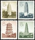 邮票图案:(127)登封嵩岳寺塔(128)大理千寻塔(129)应县释迦塔(130)洪赵飞虹塔