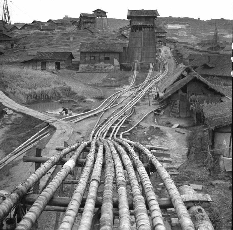 (三十年代自贡随处可见供盐卤管道过街的天桥)