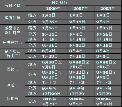 2006—2008年藏历节日日期