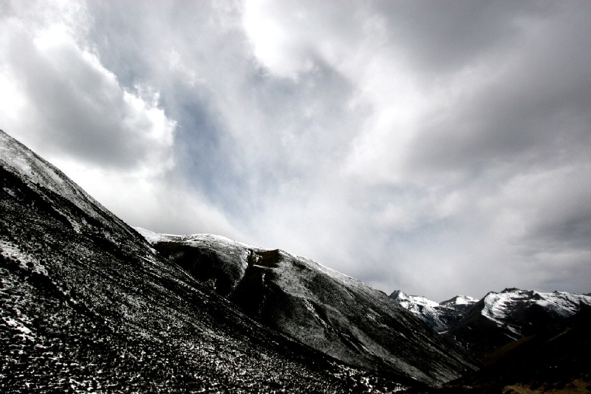 让人发愁的事情出现了, 天空出现了乌云, 太阳躲了进去, 一会儿山上就暗了下来, 一天里观察雪山山顶最佳的正午时刻已经过去了, 现在就是到了丫口, 也不一定能见到雪山的主峰, 怎么办?