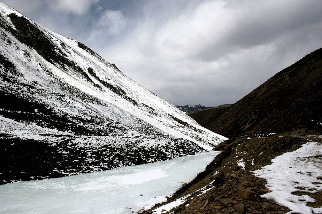 一只雄鹰从雪空飞过, 它优雅的姿势使我频临了自悲的极点, 另一群飞鸟从山那边飞过来, 它们整齐的队形又使我重新燃起走向雪山的希望, 远处突然传来了一个女人的歌声, 难道那是木雅仙子的歌唱吗, 我已经陷入了一种绝望中的胡思乱想, 我吸尽了最后一点氧气, 定下神来, 发现原来是一对年青的藏族夫妇春节前在山下走亲戚, 现在和我们一样骑着摩托车翻山回到贡嘎山下的次梅村, 据说老贡噶寺就在次梅村, 他们和我们一样丢下了摩托车走回家去, 当他们从我身边走过时, 两人悠闲的哼着歌, 和我打个招呼, 说了声扎西得勒, 很快就翻过了丫口消失在峡谷沟壑的下方, 我下定决心, 今天就是拼上性命也要登上这个丫口, 在大脑和心脏的激烈交锋中, 我最后选择了站在大脑这一边, 我在心里说, 可怜的心脏啊, 你今天帮我挺过这最后的几十米吧! 回去以后我一定用苏格兰最好的威士忌犒劳你的功勋!