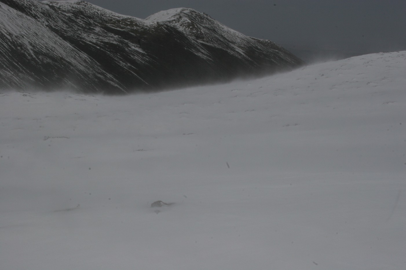突然, 我感觉到身后有一种强大的呼啸声越过丫口, 就在我还没能辨别出这是什么声音的时候, 一阵推力巨大的狂风沿着丫口的弧型雪坡横扫过来, 我跌到在地, 慌乱中紧紧地抱住了一跟经幡的柱子, 惊恐中我回过头来, 只见狂风一路从山下往上猛刮过来, 将雪地表面的细雪颗粒一路卷起, 越往高处, 山峰形状越来越小, 它们却不段聚集能量, 风力越来越大, 当它们到达丫口时, 突然一下失去了一切阻力, 于是它们一个猛地疯狂加速, 将厚厚雪粒突然向前抛散开来, 向着主峰快速地扑过去, 当我看到眼前这一切的时候, 快速飞驰的细雪颗粒已经直击眼前。