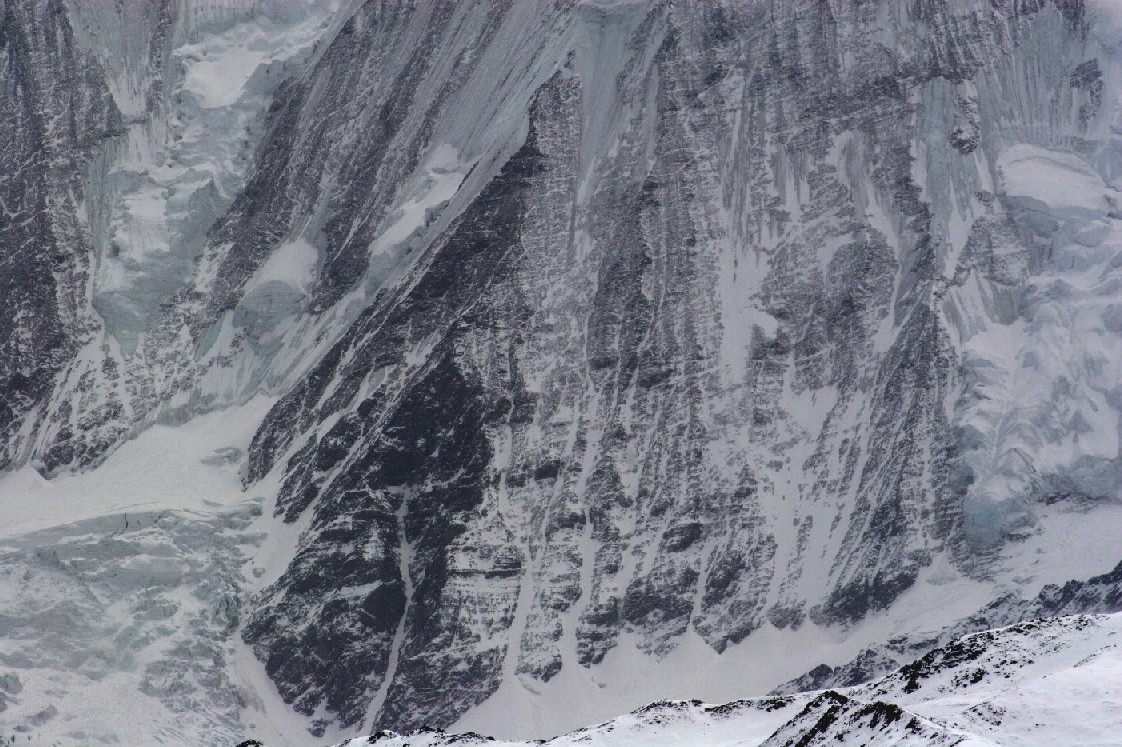 与木雅贡嘎相邻的朗格玛音峰, 身藏巨大冰川,随时发出雪崩的特大声响,可听而不可见。