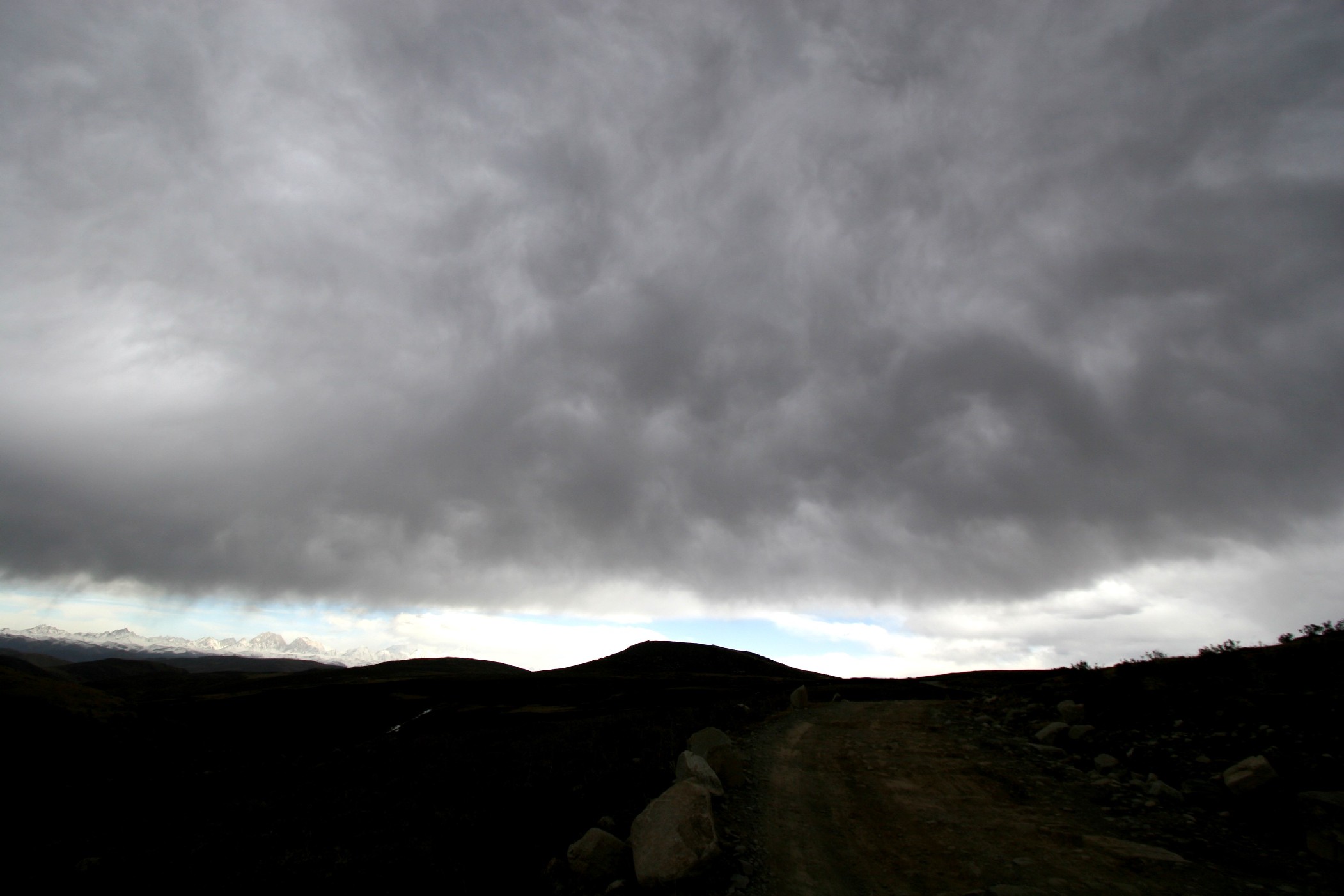 暴风来临前的丫口上,寂静无声, 风和日丽,苍天开阔,雪域茫茫。