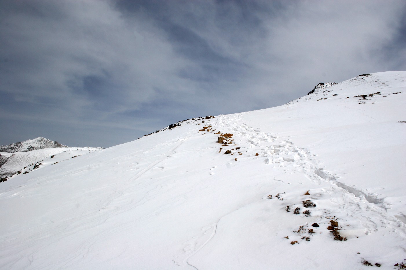 几行脚印,直上高峰, 雪山之颠, 天气变幻莫测, 脚印是最可靠的向导。