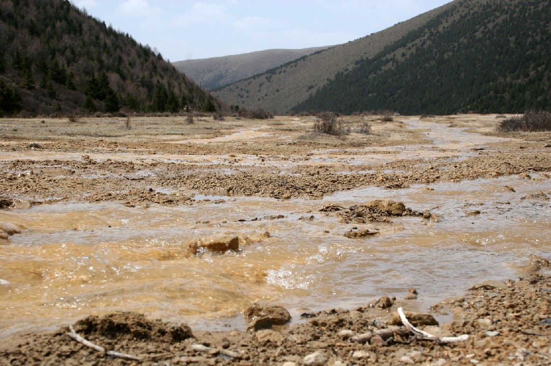 而甲根坝即将发生巨变, 随着康定机场在08年开通, 甲根坝的钙化人间瑶池将象黄龙一样被大规模开发, 一条二十公里长的路将可以从瓦九公路边直达亚哈丫口, 在今后永远的年代里, 人们从新的康定机场出来, 一个小时的时间内就可以站在贡噶雪山对面, 多么迅速而发达的年代啊,一个一切以快速来衡量的年代, 但是时代的进步毕竟不可逆转, 我下山来的时候, 只见大批的筑路工人已经开始进驻甲根坝, 许多重型的机械要等他们先开出一条简易的路才能运进来。