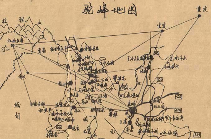 (当年驼峰航线的航线图)