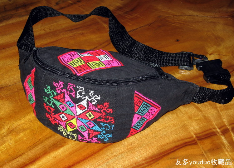 (1991年友多用羌绣绣品缝制的羌绣腰包)