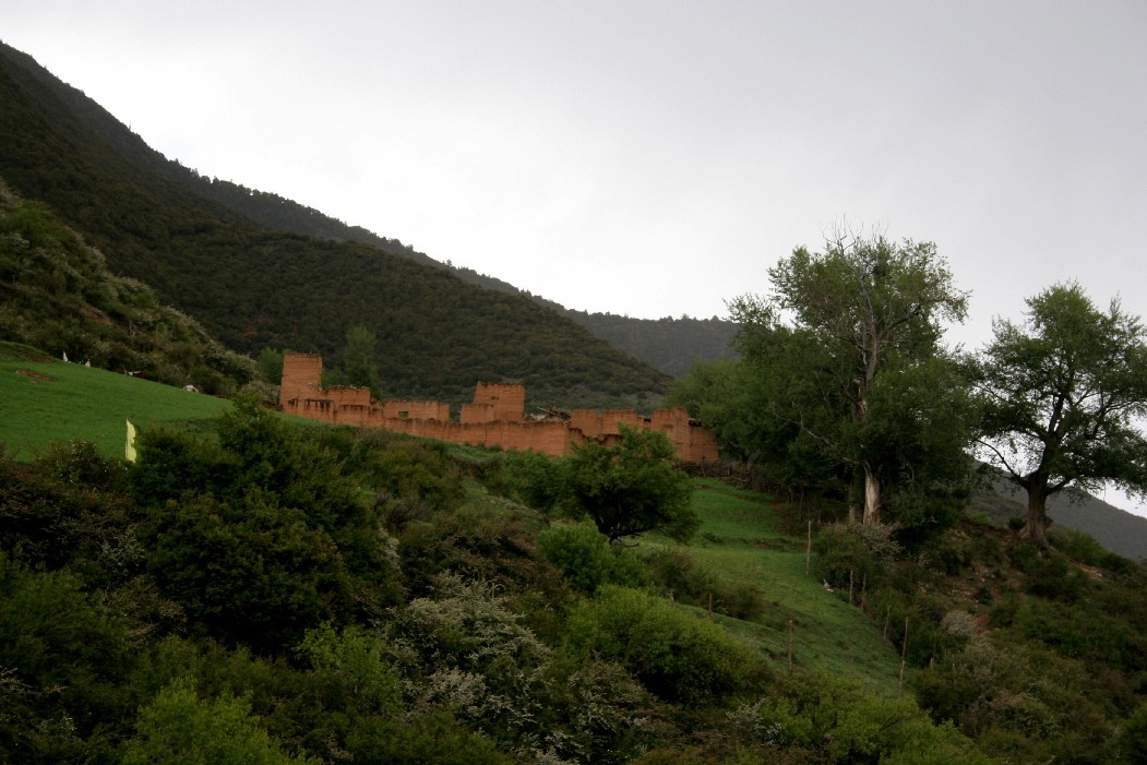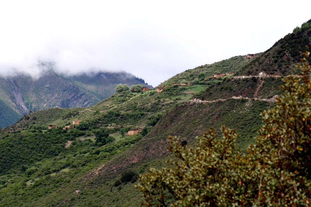 所有的人全都上山挖虫草了, 还有许多房子已经空了, 拆了一半只留下半壁残墙立在悬崖边, 使人感觉来到了一个被荒废的村子, 原来乡上近年来鼓励移民, 退耕还林, 山上的村民往下搬到乡里, 政府补贴修新房, 叶巴村算是比较穷的, 洛嘎说, 这村里没有一家人有车, 这条路是其他几个村子凑钱修的, 因为叶巴是金沙江大峡谷里五个村子的必经之地, 山崖上的这条路长二十多公里, 一直通往措拉。