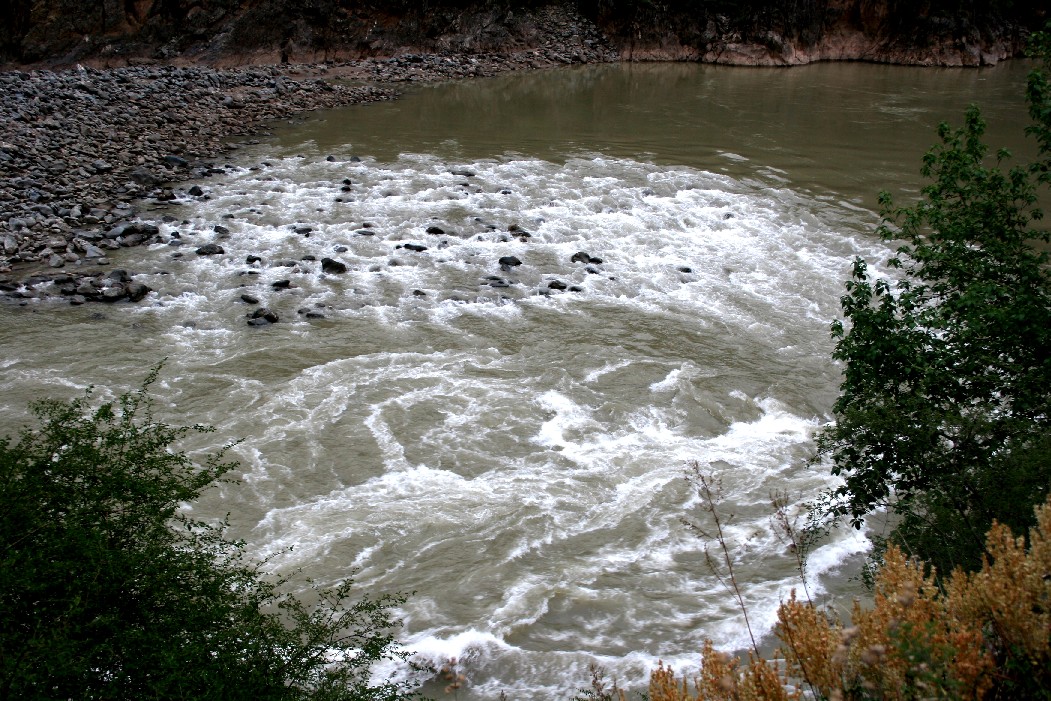 玉龙雪山下虎跳峡的汹涌澎湃, 长江巫峡神女峰的矫柔妩媚, 长江西陵峡的宽阔浩瀚, 在中国是人所共知的, 但是金沙江峡谷的深险莫测和遥远无边, 我们只是在描写中国长漂队员生活的 “江河魂”这本书里略知一二, 由于路途遥远, 山险水恶, 很少有人知道有这样一个地方, 曾经无情地吞噬了中国长漂队三名队员的生命, 而且让装备精良, 训练有素的美国长漂队知难而退。而这个地方眼下就在我的面前, 它就是叶巴大峡谷和叶巴险滩。