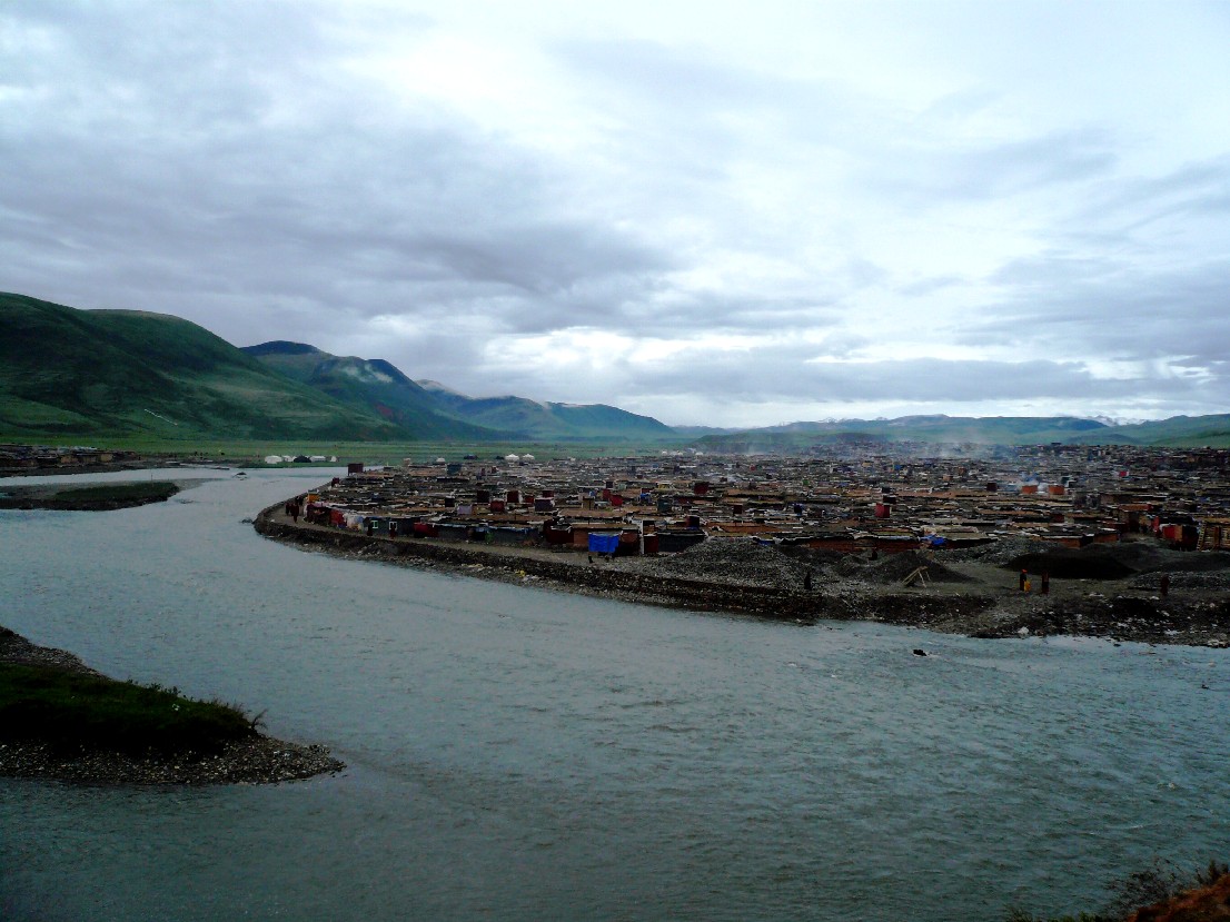 宽阔的昌曲河环绕亚青寺流向昌台,曾科,在河坡汇入金沙江!