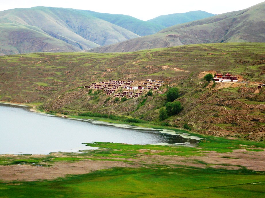 卡萨措旁的觉姆寺(尼姑庙)矗立在宁静的湖水边,这里风柔雨细,色泽鲜明!
