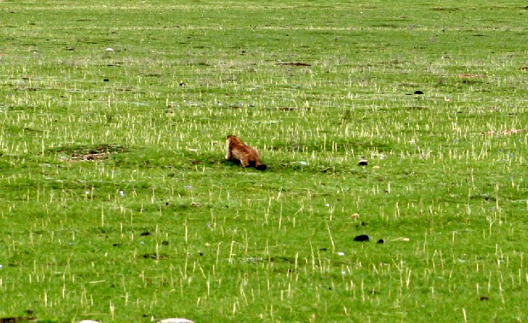 草地上旱獭四处游走,悠闲自在,若无旁人!
