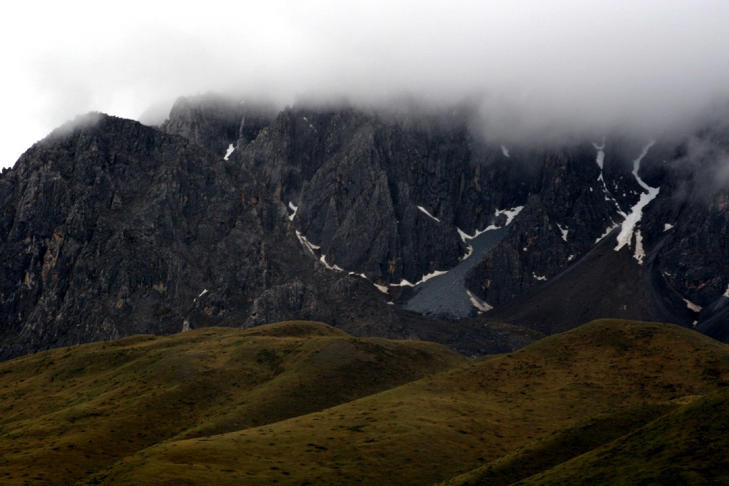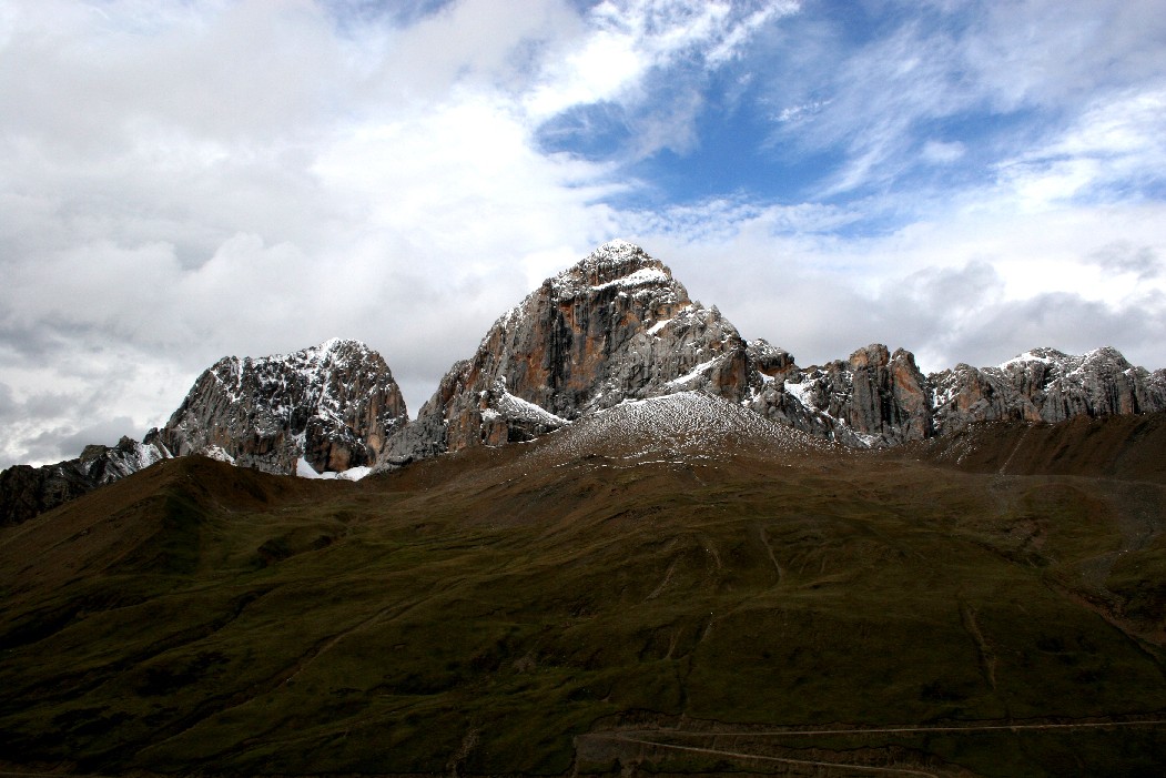 进入甘孜县之前在洛戈梁子上行进,只见沙鲁山的屏障像勇士般地镇守着西去的大道!