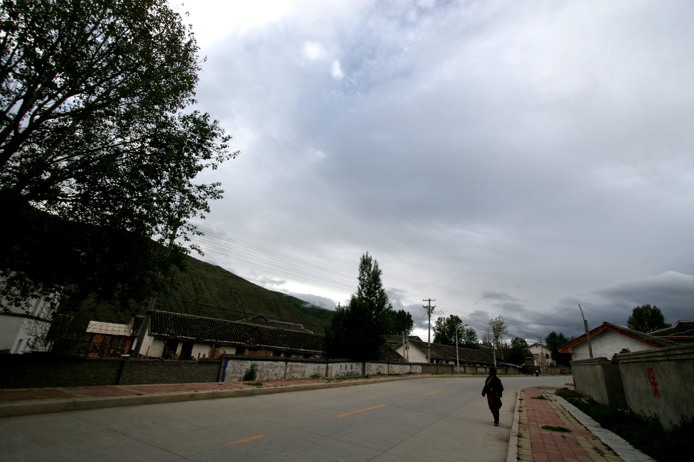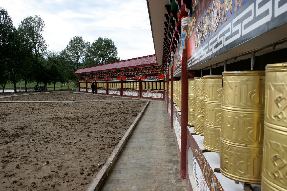 六月的鲜水河畔,阴雨的天气带来大量的乌云,湿润的空气笼罩着虾拉沱,一个霍尔族的老人手摇经轮坐在地震纪念碑亭外面的树桩上,面对缓缓流淌的鲜水河,眼光里充满了一种饱经风霜的无奈和茫然,他是到这里来转经以悼念在地震中死去的亲人的,看见有人来,他站了起来,默默地走到右边的转经台推动了金灿灿的经筒,转经筒发出了滚滚而动的声音,他低着头围绕转经台,口里默默地念着经文。