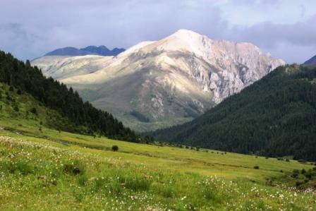 松梭沟口, 上麻绒村村长和另外三个老乡骑着马, 驮着给山顶松梭牛场的酥油,粘粑等食物进了沟, 他们在碎石和烂木片铺成的小路上鱼贯而行, 从这里到上顶至少也要两个小时, 眼看暴雨就要来临, 他们不由得加快了行进的速度, 山沟里刮过一阵大风, 迎风舞动的森林黑了下来, 不一会儿, 雨点就开始打在路上, 朝前望去, 只见通向山顶的峡谷的天空里, 雨水拉起了一道白色的幔帘, 这道幔帘飘来飘去, 将雨水撒向了峡谷两面山上开满了鲜艳的格桑花的山坡。
