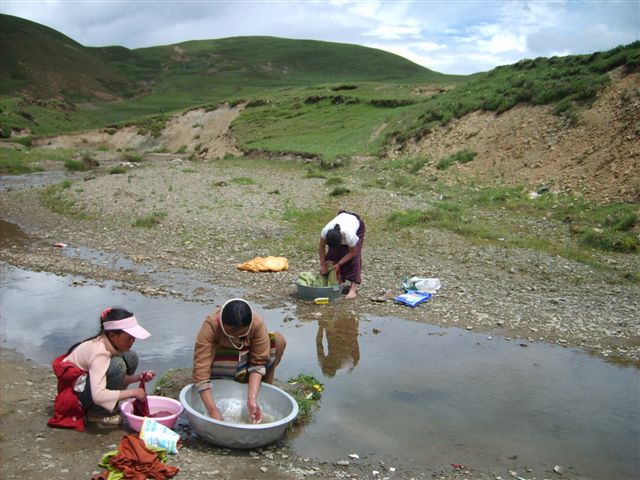 这张是在戈奔乡政府对面照的。这里的人畜饮水比较困难,上游水源经常被野狗污染。河边有三位藏族妇女在洗衣服,河对面的可是美女哦。可惜我不好当面拍照,很遗憾啊~!