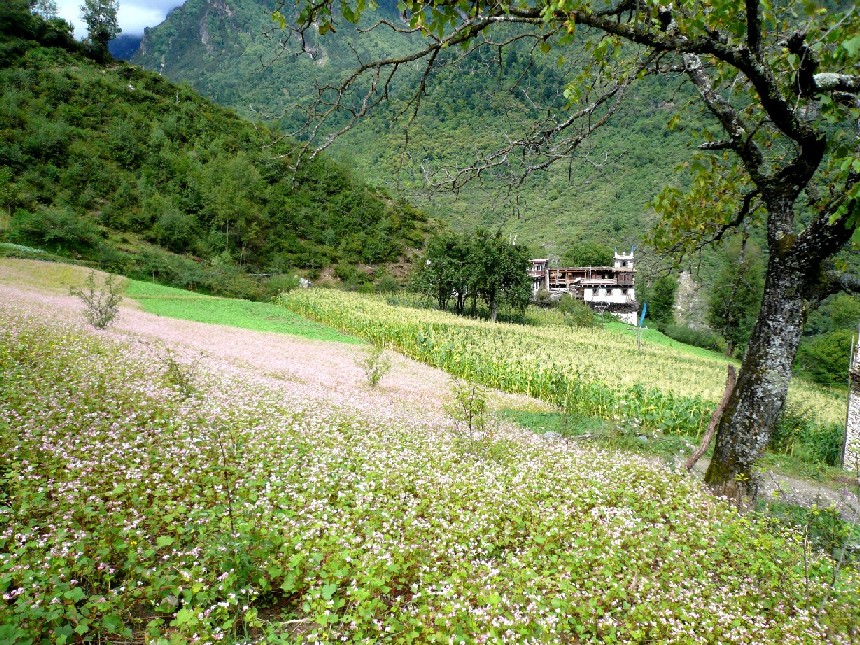 荞籽花盛开的山坡田园,装点着如梦的村庄。