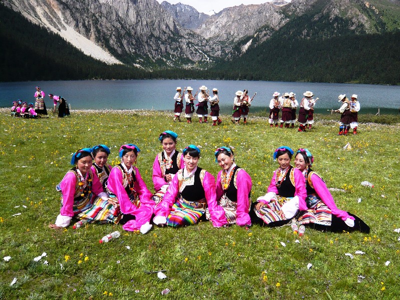 这里的措普沟,是川西最大的高山湖泊, 在这圣湖的境地里, 神鱼听得见人声, 温泉随歌声喷涌, 这里是金沙江畔的民间歌舞之乡, 阳光明媚的草地上, 湖边, 一群美丽的姑娘走过来, 跳起热烈柔美的巴塘弦子, 小伙子们拉着弦胡在前面引路, 目不转睛地盯着姑娘们的舞步, 一圈又一圈, 一曲又一曲, 一直跳到月亮升起, 在这里, 人们没有仙境的清规戒律, 只有人间的真挚爱情, 在这纯净的天地里, 他们的生活充满了活力和激情, 听听他们的歌声, 就知道这活力和激情已经融入了美丽的歌舞之中: