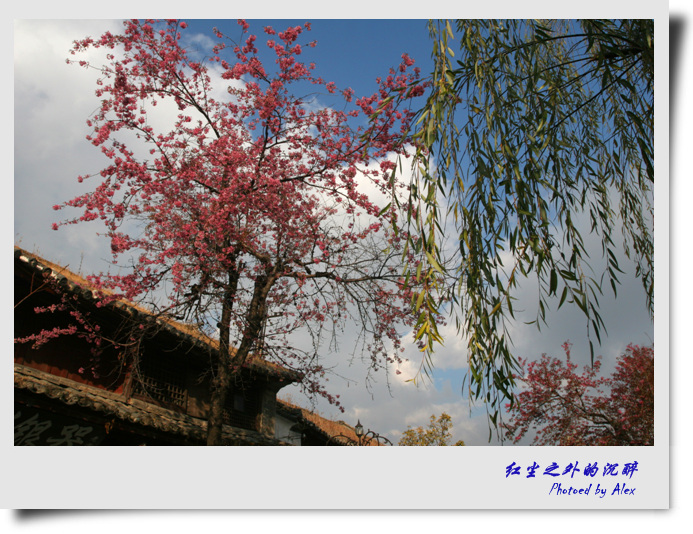 然而没想到的是,大理,竟以满街盛开的樱花迎接我的再次到来。此时的季节,在塞外,还应该是“千里冰封,万里雪飘”的隆冬时节;即使在江南,人们也一定还在穿着厚重的冬装忍受那难耐的阴冷。可没想到,此时的大理,竟是红花绿柳闹枝头,宛若江南初春一般。心情格外舒畅,一扫之前的郁闷。