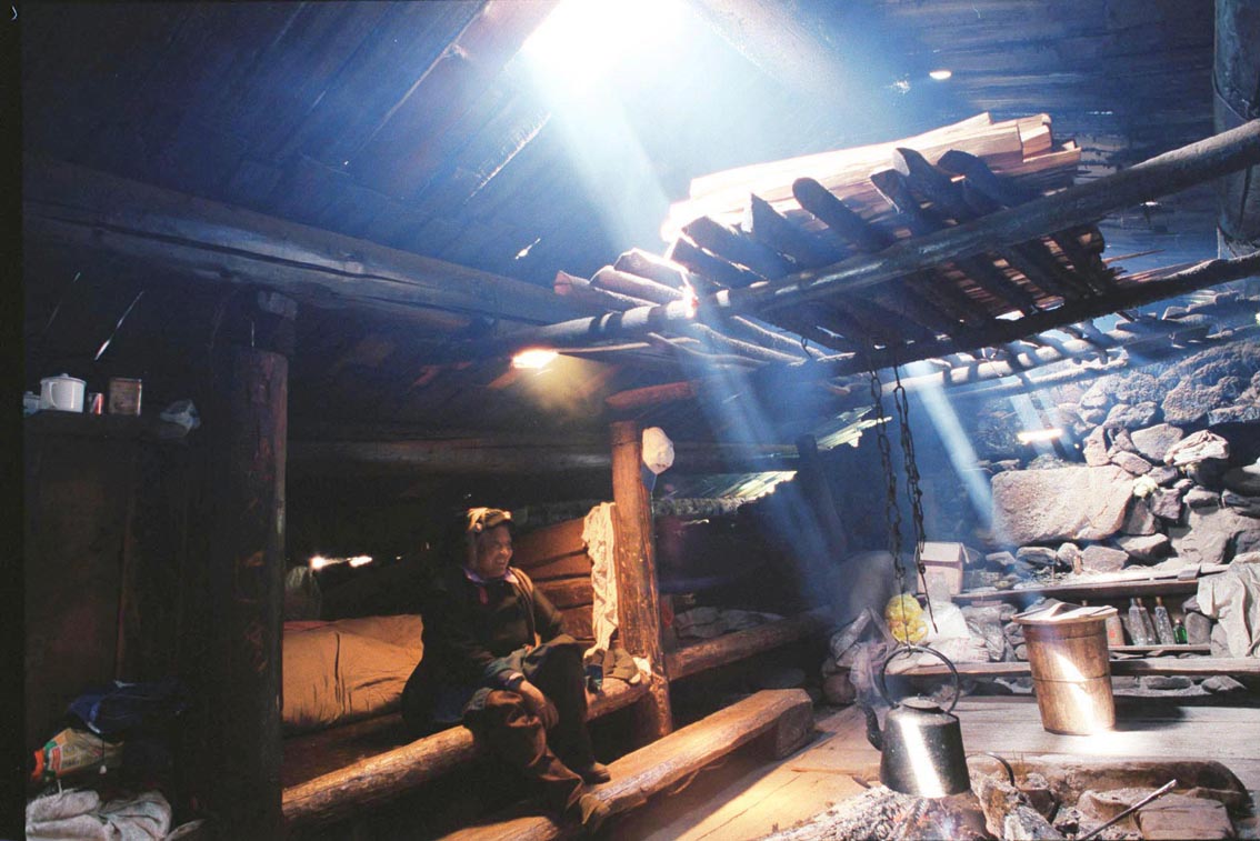 四姑娘山双桥沟内的藏族土房子.