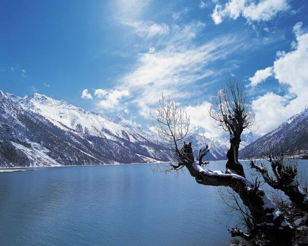 此时到达八宿县的然乌湖边,很有可能还会遇上大雪。但这时的天气已不像严冬那样寒冷,对于摄影者来说,这可是最好的机会了,既可以感受到冰天雪地的壮美风光,又不致于冻得操作相机都困难。然乌湖实际上是帕隆藏布流经然乌时江面变宽后形成的湖,它由然乌湖和安日湖两段组成,两段各有特色,一般来说安日湖这边比较容易出拍摄效果。在湖边离公路很近处有一个半岛伸入水中,由于地处林区,当地的藏民都用木材建造房屋,连屋顶都是用木板拼成的,靠水边的空地上,青稞秆一串串搭在高高的木架上,很具当地特色。如果是雪后初晴,远处的青山云里雾里,积雪皑皑,倒映在蓝色的湖面上,微风起时,波光粼粼,这种雪景也只有在川藏线上的湖泊边才看得到。