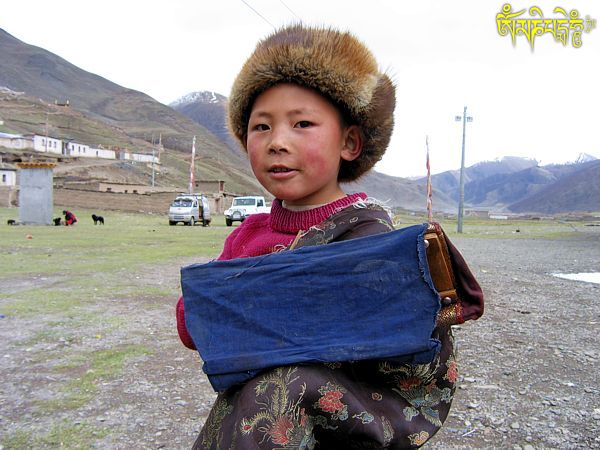 一个藏族小朋友给我们看他抄写的经文,装在一个很精致的小盒子里。